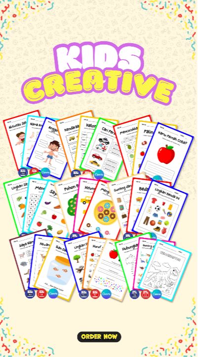 Kids Creative adalah pilihan tepat bagi orang tua, guru, dan pengasuh yang ingin memberikan pengalaman belajar yang menyenangkan dan bermakna bagi anak-anak. Dukung perkembangan mereka dengan cara yang kreatif dan interaktif!