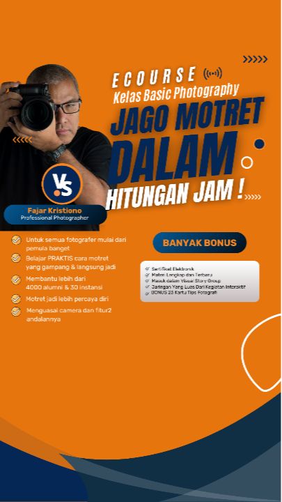 Dalam e-course ini, kalian akan belajar dasar-dasar fotografi yang penting untuk memulai perjalanan kalian sebagai fotografer, baik untuk hobi atau karir profesional dari Mentor FAJAR KRISTIONO Photographer Professional yang sudah sangat berpengalaman membagikan skill fotografi nya dan terkenal dengan kemudahan dan kesederhanaan penyampaian ilmu2nya